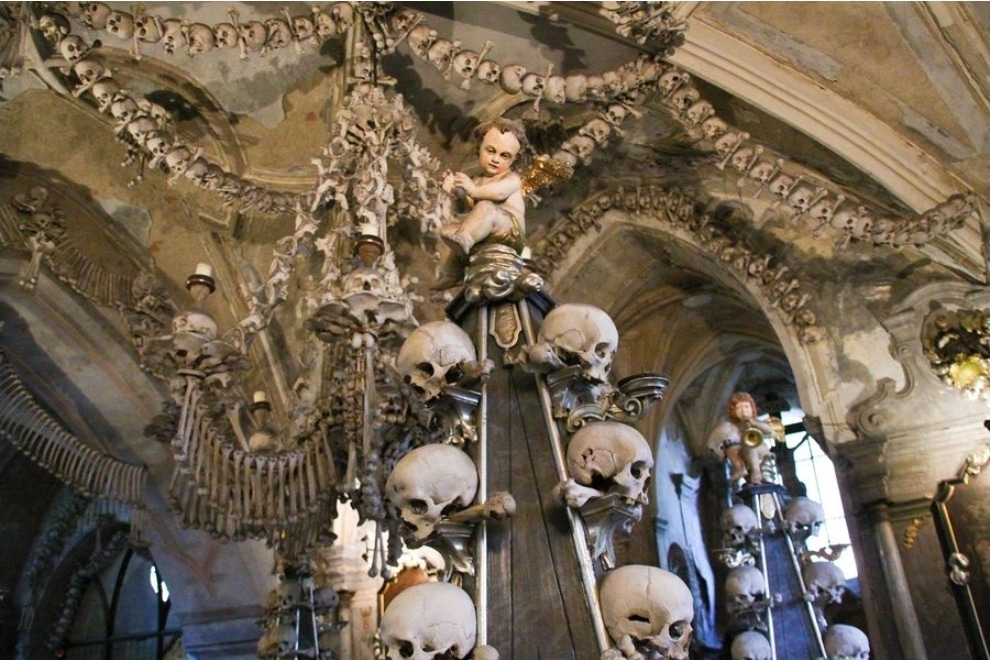 Në këtë kishë të vogël katolike ruhen eshtrat e rreth 40 mijë njerëzve, të vendosura artistikisht në mure, tavane e mobilie. Kryevepra më e njohur është llamba prej kockash njerëzore, si dhe stema e familjes aristokrate Schwarzenberg. E gjithë kjo nuk u bë për qëllime makabre, por praktike, për të kursyer hapësirë varrimi. Pas kthimit nga Jerusalemi në vitin 1278, abati i Sedlec solli pak dhe nga Golgota, vendi i kryqëzimit të Krishtit, dhe mijëra të krishterë kërkuan të varroseshin aty. Për të bërë vend për të rinjtë, eshtrat e mëparshme u zhvarrosën dhe u vendosën brenda kapelës.
