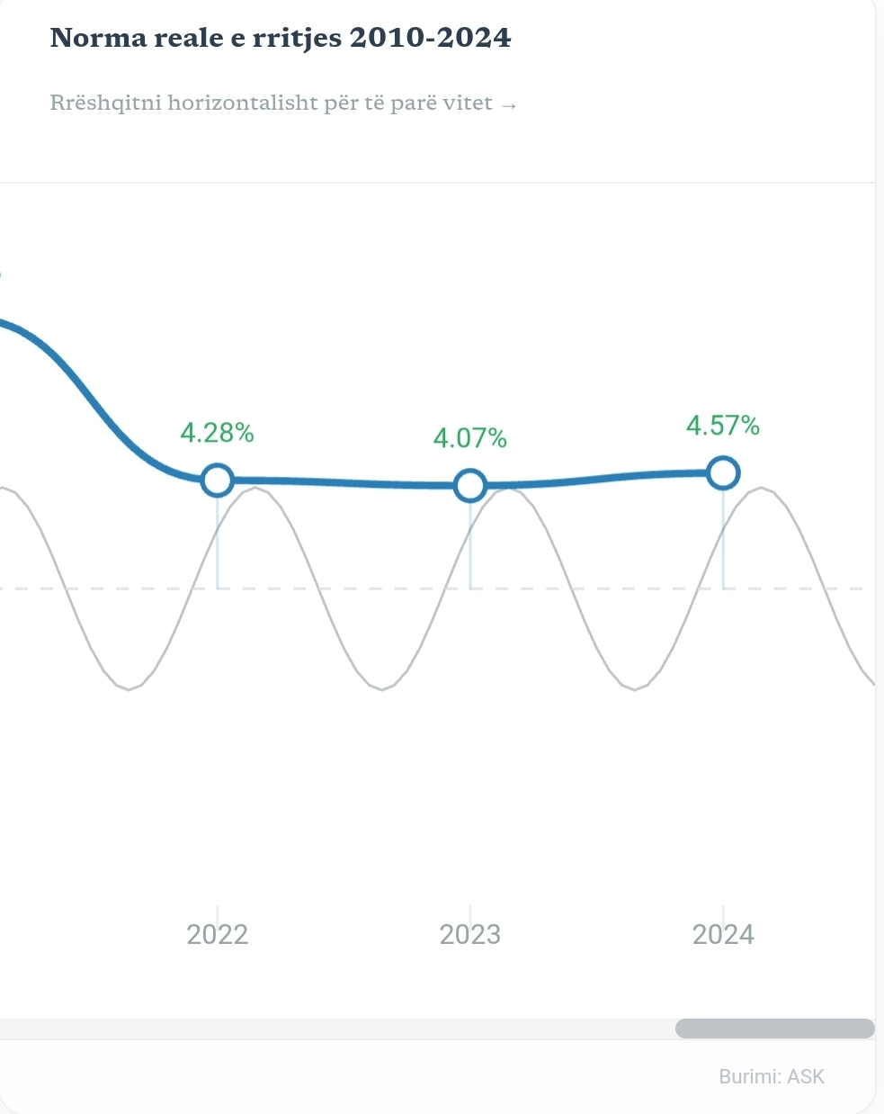 Edhe pse këto shifra e vendosin Kosovën në pozita më të favorshme krahasuar me fqinjët – Serbia (3.0 për qind), Mali i Zi (3.3 për qind) dhe Maqedonia e Veriut (3.0 për qind) – ritmi mbetet nën trendin historik të periudhës para-pandemike.
