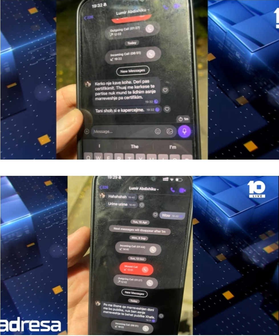 LAJME “Mos e bëni marrëveshjen publike”: Xhafer Tahiri ia nxjerr mesazhet Abdixhikut për koalicionin me VV 24 Tetor, 2025 - 22:29 Nga Korrespodenti Share FacebookTwitterPinterestWhatsApp Xhafer Tahiri i ka publikuar mesazhet që i ka shkëmbyer me Lumir Abdixhikun për koalicionin me VV-n Aty, Abdixhiku del të jetë në dijeni për marrëveshjen, por kërkon që ajo të mos bëhet publike. FOTOT: Video nga Inteligjenca n'3D - mos e humbisni: Share FacebookTwitterPinterestWhatsApp PUBLIKIMET E FUNDIT Balluku thirret nga SPAK/ Zbardhet telefonata kërcënuese e Ramës ndaj prokurorit Korrespodenti - 24 Tetor, 2025 - 20:59 “NATO do të godasë avionët rusë”/ Paralajmërimi drithërues i Mark Rutte Korrespodenti - 24 Tetor, 2025 - 20:38 Shkencëtarët ngrenë alarmin: Të ndalohet menjëherë konsumi i proshutës, po shkakton kancer Korrespodenti - 24 Tetor, 2025 - 20:22 Në gjendje perfekte, paleontologët gjejnë vezën 70 milionë vjeçare të dinosaurit (Foto) Korrespodenti - 24 Tetor, 2025 - 18:48 Hoxha Feim Dragusha digj hajmalinë që solli Labinot Rexha në emision – Reagime të forta në studio Korrespodenti - 24 Tetor, 2025 - 18:08 Labinot Rexha zbulon çka u gjet brenda hajmalisë që e gjeti në shtëpi – Tronditet Hoxha Korrespodenti - 24 Tetor, 2025 - 18:07 Moment tronditës: Shehu mbulon një “të vdekur” të improvizuar me flamurin kuq e zi – Ja si reagon Hoxha Korrespodenti - 24 Tetor, 2025 - 18:06 Reperi i njohur shqiptar, konkurrent i Big Brother Vip 5? Korrespodenti - 24 Tetor, 2025 - 13:14 Zyrtare: Gjenerali Wesley Clark konfirmohet si dëshmitar i mbrojtjes së Hashim Thaçit Korrespodenti - 24 Tetor, 2025 - 11:55 TË NGJASHME Balluku thirret nga SPAK/ Zbardhet telefonata kërcënuese e Ramës ndaj prokurorit 24 Tetor, 2025 - 20:59 “NATO do të godasë avionët rusë”/ Paralajmërimi drithërues i Mark Rutte 24 Tetor, 2025 - 20:38 Në gjendje perfekte, paleontologët gjejnë vezën 70 milionë vjeçare të dinosaurit (Foto) 24 Tetor, 2025 - 18:48 Reperi i njohur shqiptar, konkurrent i Big Brother Vip 5? 24 Tetor, 2025 - 13:14
