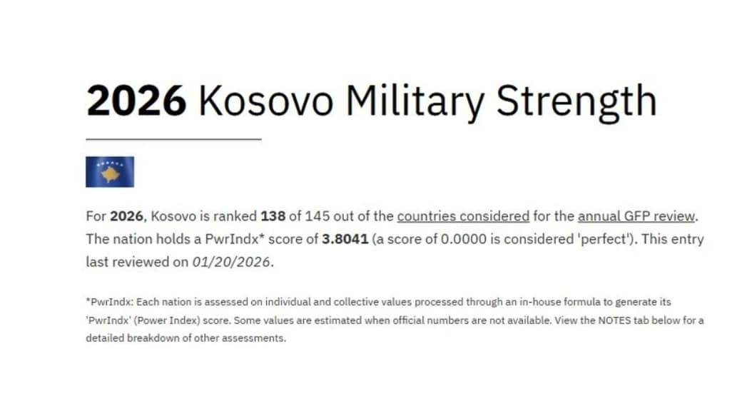 Në renditjen vjetore 2026 Kosova renditet e 138-ta (indeksi i fuqisë ushtarake konsiderohet 3.8041).