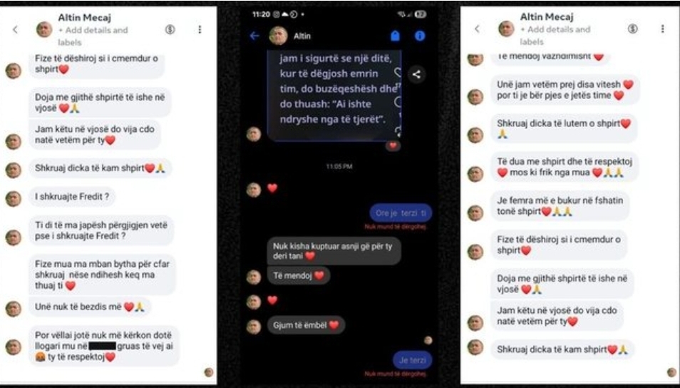 “Unë jam motra e Fredi Lamaj dhe dua të sqaroj se akuzat e shtetasit Altin Mecaj, sikur vëllai im e ka dhunuar, nuk janë të vërteta. Fredi Lamaj nuk ka marrë pjesë në asnjë rrahje apo konflikt, dhe kjo mund të faktohet. Po flas sepse prej më shumë se 6–7 ditësh ky shtetas po del vazhdimisht në media, duke dhënë deklarata të pavërteta dhe duke u paraqitur padrejtësisht si viktimë. Në mënyrë të veçantë, ai ka deklaruar publikisht se ndaj meje ka bërë vetëm një koment në Facebook, si një kompliment, gjë që nuk është e vërtetë. Në realitet, unë kam qenë subjekt i mesazheve të shumta private, të vazhdueshme dhe insistuese, të cilat përbëjnë ngacmim dhe përndjekje”, thotë zonja, së cilës në mesazhe, Mecaj i drejtohet si Fize.