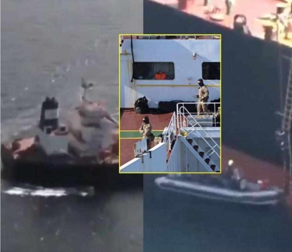 Në pamje shihet personeli ushtarak duke iu afruar anijes së madhe me një barkë të shpejtë dhe duke përdorur një palë shkallë për të hipur në të. Anija e njohur si “Boracay”, e cila ka përdorur shumë identitete dhe ishte njëra nga katër anijet e lidhura me Rusinë në ujërat afër Danimarkës në kohën kur u panë dronët më 22 e 24 shtator. Këto fluturime deri më tani nuk janë shpjeguar plotësisht.