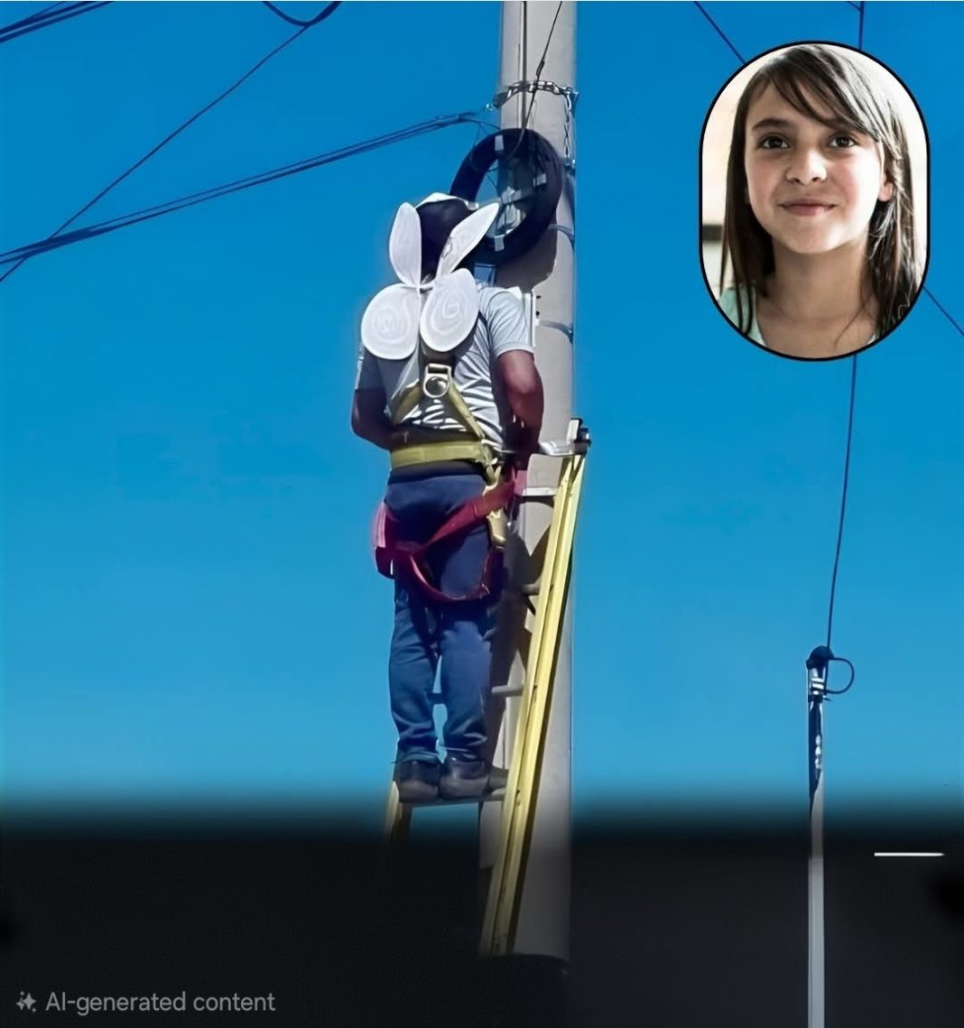 Një foto që qarkulloi në rrjetet sociale ka prekur miliona njerëz në mbarë botën: një elektricist i cili ngjitet çdo ditë në shtylla të larta elektrike për punë, shihet duke mbajtur një palë krahë engjëlli rozë në shpinë – dhuratë nga vajza e tij e vogël.