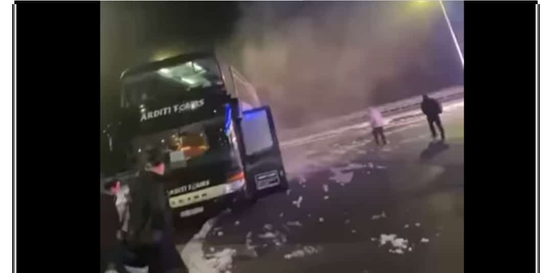 Autobusi që po bartte mërgimtarë, të cilët kanë përfunduar pushimet e tyre dimërore dhe po udhëtonin drejt mërgimit, është përfshirë nga zjarri.