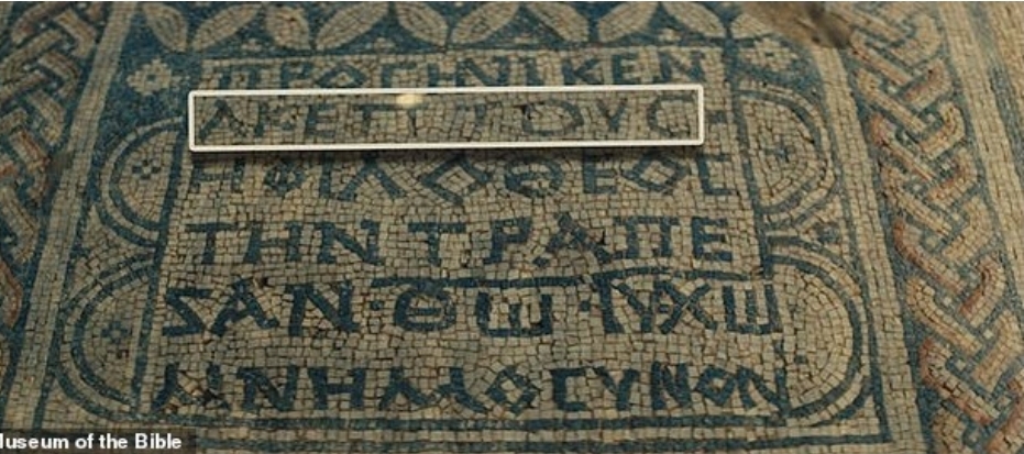 Një mozaik edhe më inovativ bëri bujë vitin e kaluar, i cili paraqiste mbishkrimin më të hershëm që e shpallte Jezusin si Zot. Mozaiku 1800-vjeçar, i zbuluar nga një i burgosur i burgut të Megidos, përmban shkrimin e lashtë grek: “Akeptousi, që e do Zotin, ia ka ofruar tryezën Perëndisë Jezu Krisht si përkujtimore”.