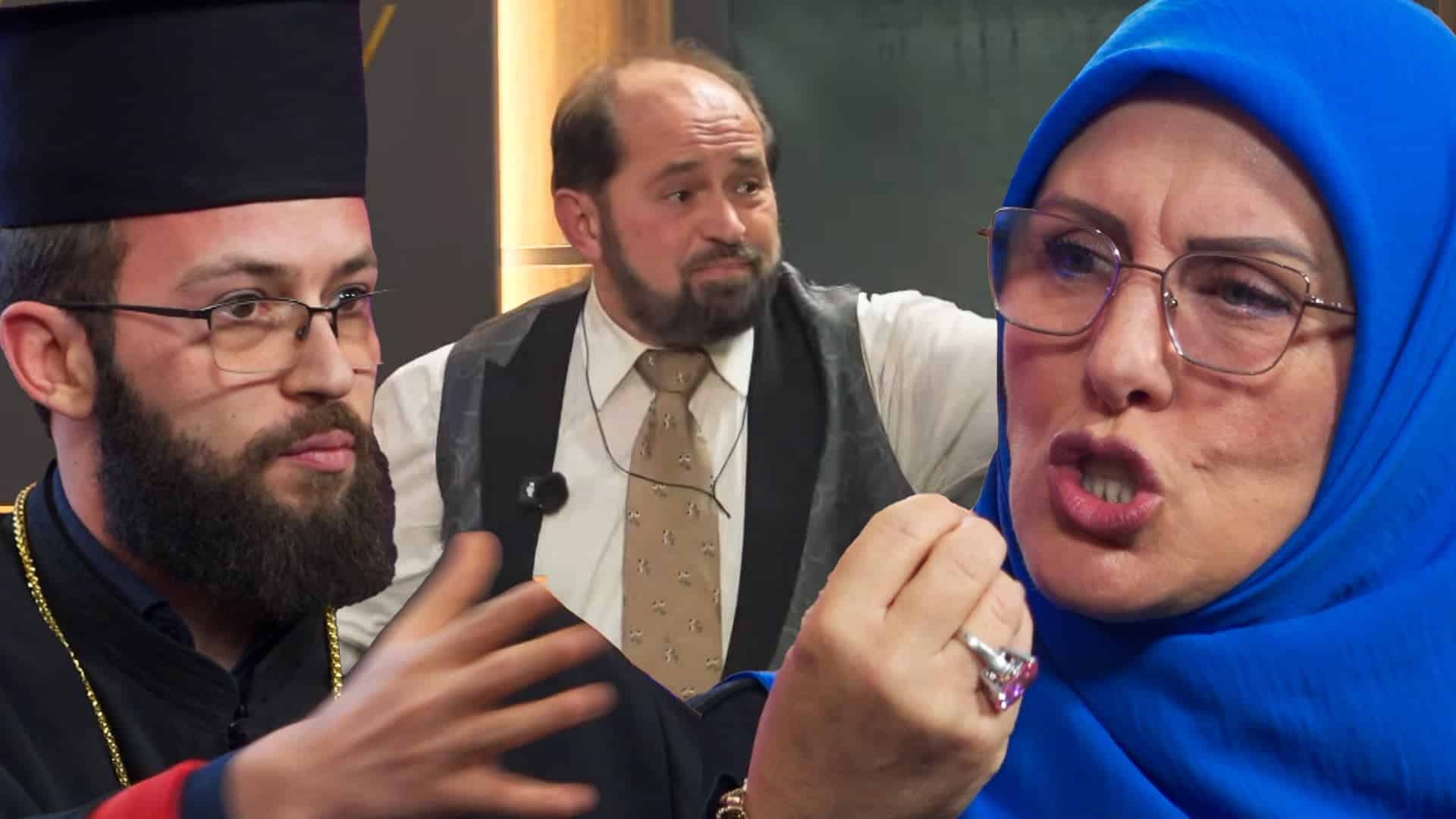 Në emisionin Kojshia Show, këtë javë të ftuar ishin islamologia Ikballe Huduti, bashkëshorti i saj Luani Broker, si dhe Peshkopi i Kosovës Nikolla Xhufka.